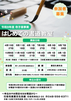 令和8年度産文寺子屋Ⅱ はじめての書道教室参加者募集